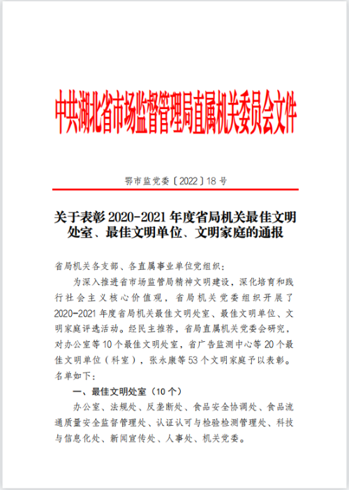 2020-2021 年(nián)度省局機關(guān)最佳文明 處(chù)室、一边🔞做饭一边躁狂暴躁电影🚩最佳文明(ming)單位、文明家(jiā)庭