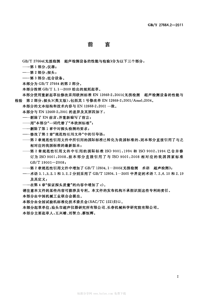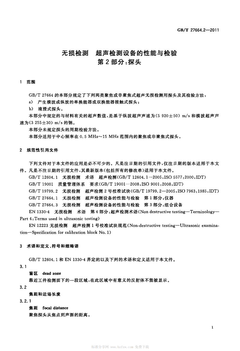 GBT 27664.搡BBBB🔞搡BBB搡五十㊙️2-2011 無損(sun)檢測 超聲檢(jiǎn)測設備的性(xing)能與檢驗 第(dì)2部分:探頭