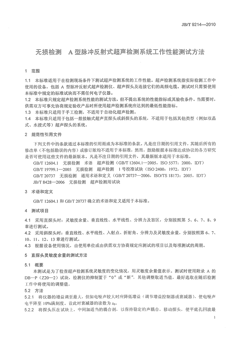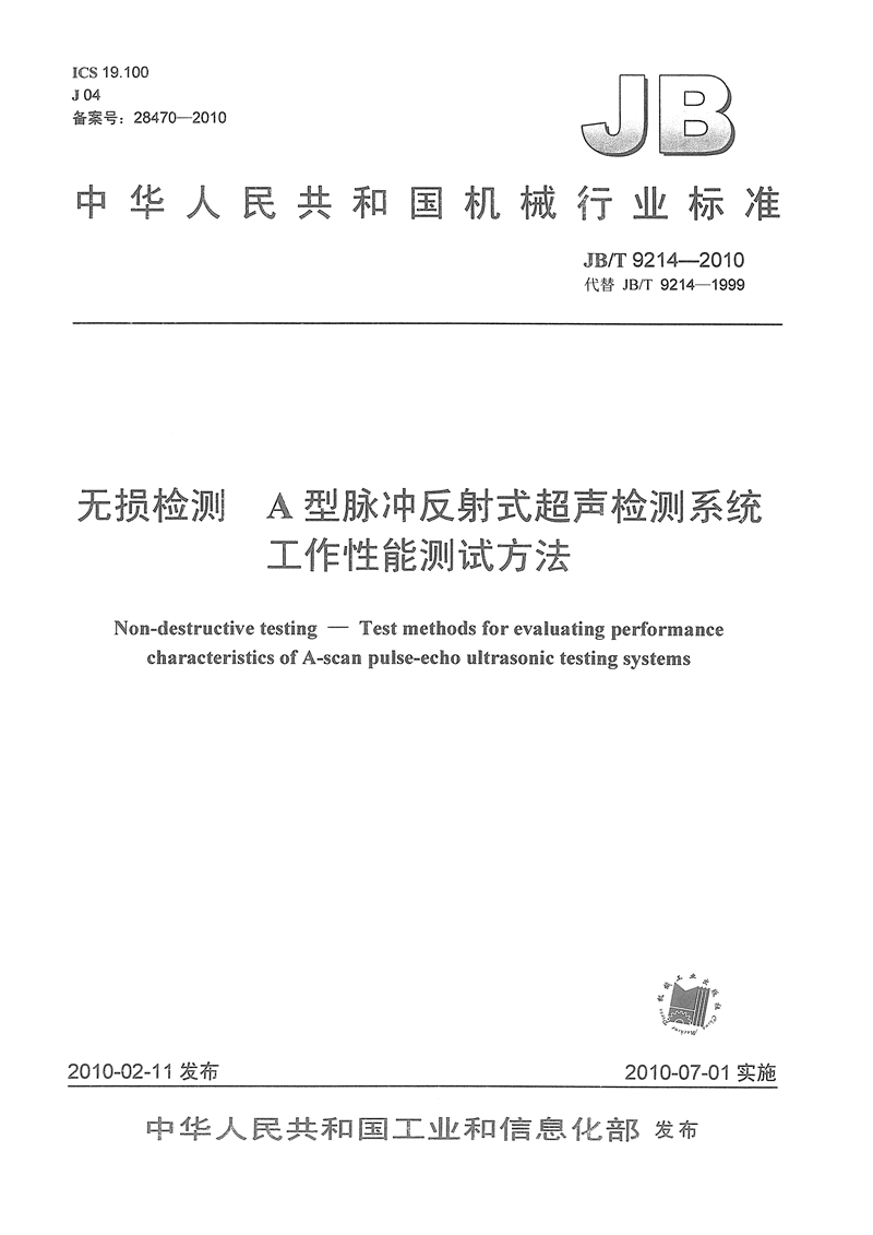 JBT 9214-2010 巨龙征🔞服美女明星🌈A型(xing)脈沖反(fǎn)射式超(chāo)聲檢測(ce)系統工(gōng)作性能(neng)測試方(fāng)法
