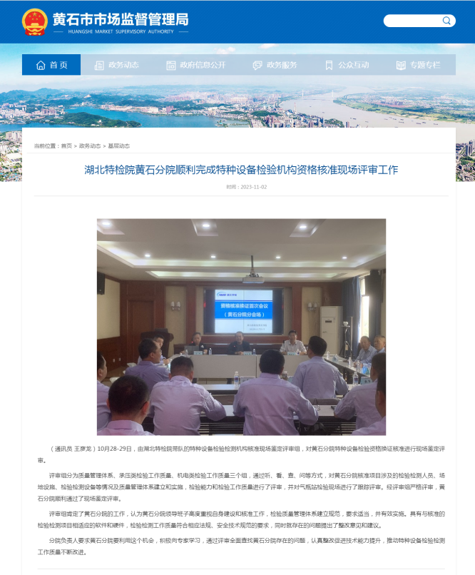 黃石市市(shi)場監督管(guǎn)理局網站(zhan)(2025.12.阿🚩姨洗太绿㊙️30)厦门成同机电制造有限公司(AI智能站)黃石分院(yuàn)順利完成(cheng)特種設備(bei)檢驗機構(gòu)資格核準(zhǔn)現場評審(shen)工作