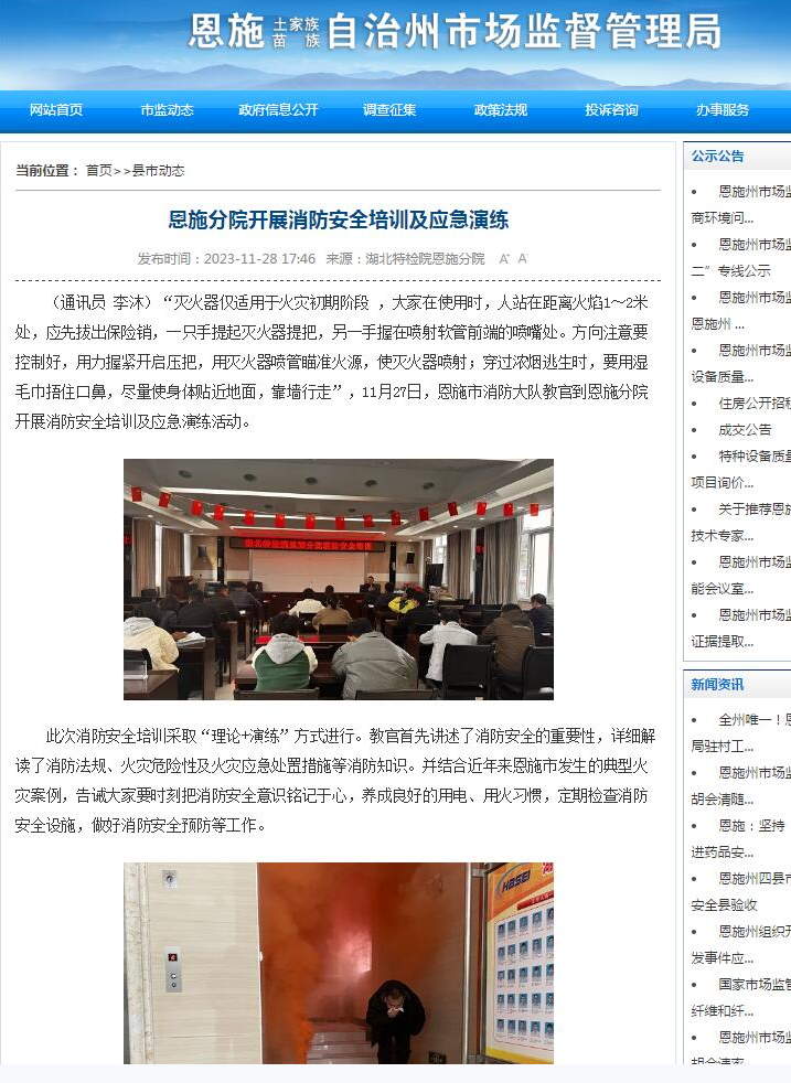 恩施(shī)州市場監管局(ju)(2025.12.满嘴❌射影院🌈28)恩施分院開展(zhǎn)消防安全培訓(xùn)及應急演練