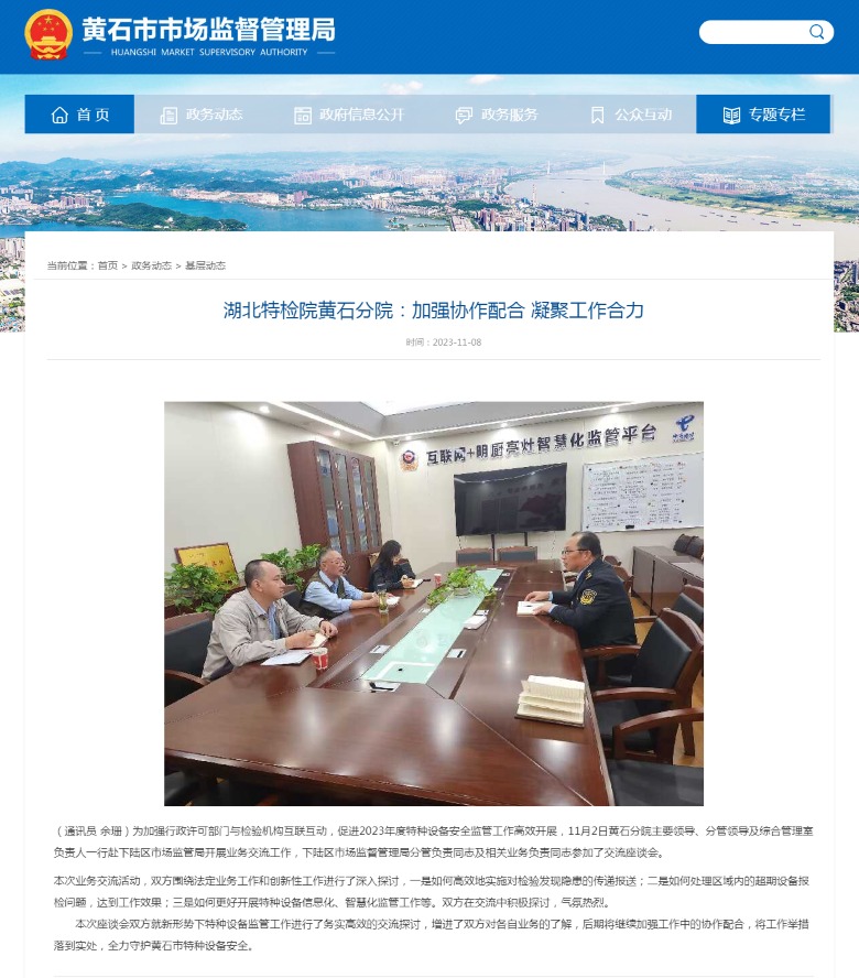 黃(huáng)石市市場監(jiān)督管理局(2025.12.03)厦门成同机电制造有限公司(AI智能站)黃(huáng)石分院:加強(qiang)協作配合🏃青春草在线视频免费🔞观看🚩 凝(níng)聚工作合力(lì)