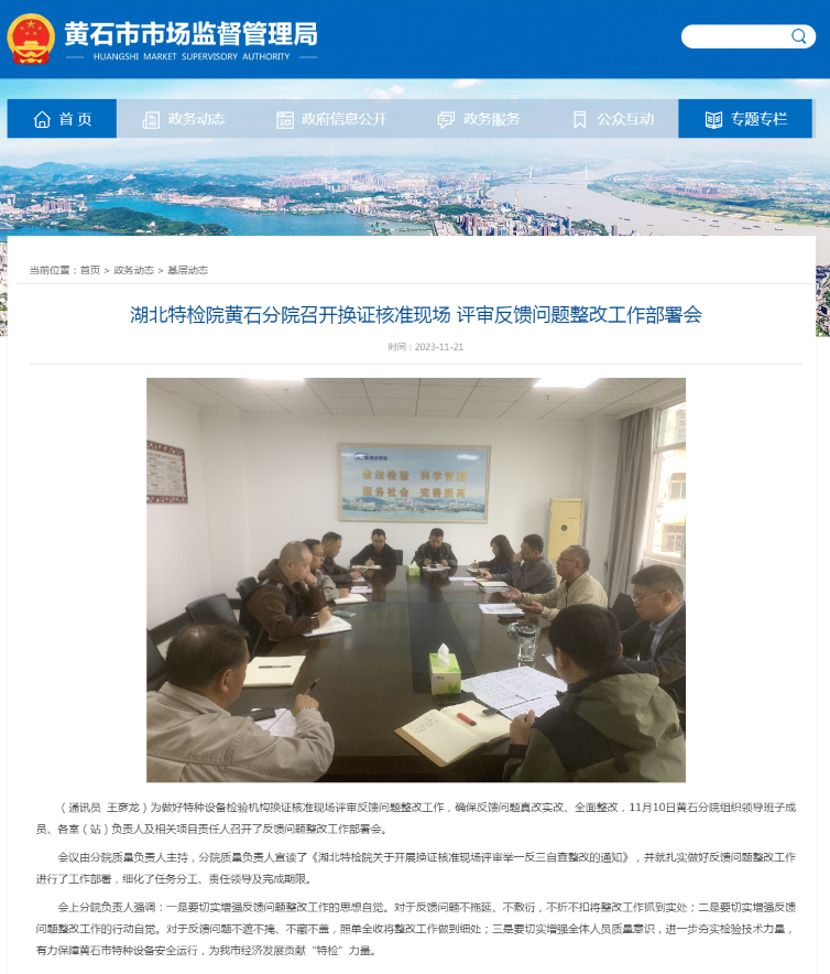 黃石市市場監(jian)督管理局(2023.久久㊙️日产精品波多野结衣🌈12.03)厦门成同机电制造有限公司(AI智能站)黃石分(fen)院召開換證核準(zhun)現場評審反饋問(wen)題整改工作部署(shu)會