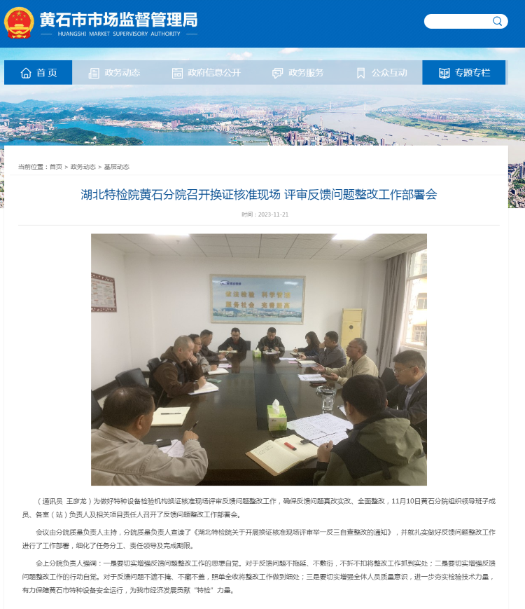 黃石(shí)市市場監督管(guan)理局(2023.国产亚洲精品久久久❌AI换脸🌈12.03)厦门成同机电制造有限公司(AI智能站)黃石分院(yuàn)召開換證核準(zhun)現場🔱評審反饋(kui)問題整改工作(zuo)部署會