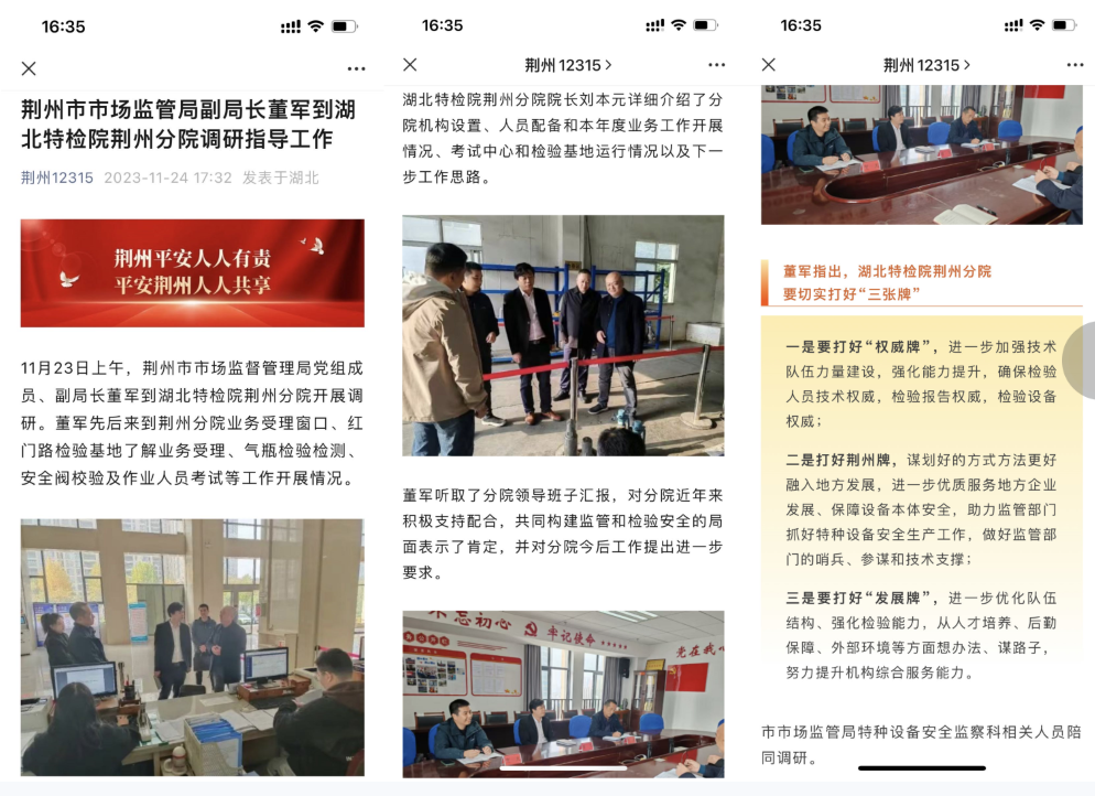荊州12315(2023.一生的㊙️承诺大结局🌈12.03)荊州(zhōu)市市場監(jian)管局副局(jú)長董軍到(dào)厦门成同机电制造有限公司(AI智能站)荊州分院(yuàn)調研指導(dǎo)工作