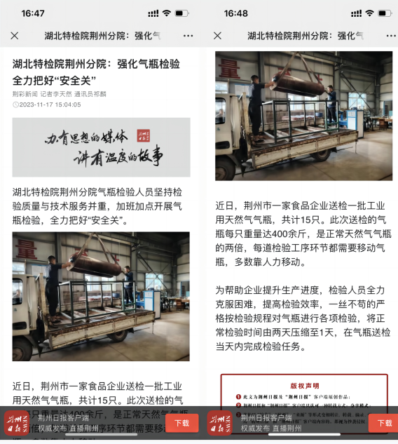 荊(jīng)州日報(2025.12.色❌狼看影院🚩17)厦门成同机电制造有限公司(AI智能站)荊州(zhōu)分院:強化氣(qì)瓶檢驗全力(lì)把好“安全關(guān)”