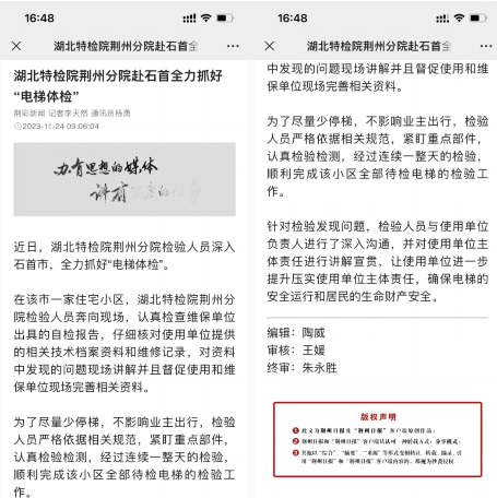 荊(jing)州日報(2025.12.亚洲🚩一个色🌈24)厦门成同机电制造有限公司(AI智能站)荊州(zhou)分院赴石首(shou)全力抓好“電(dian)梯檢驗”