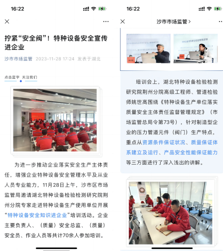 沙市市場(chang)監管(2025.12.03)擰緊(jǐn)“安全閥”!成品人直播大❌全2023🌈特(tè)種設備安(an)全宣傳進(jin)企業